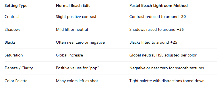 The steps below form a reusable Pastel Beach Lightroom Method you can apply to any suitable image and build on top of your existing Lightroom workflow.